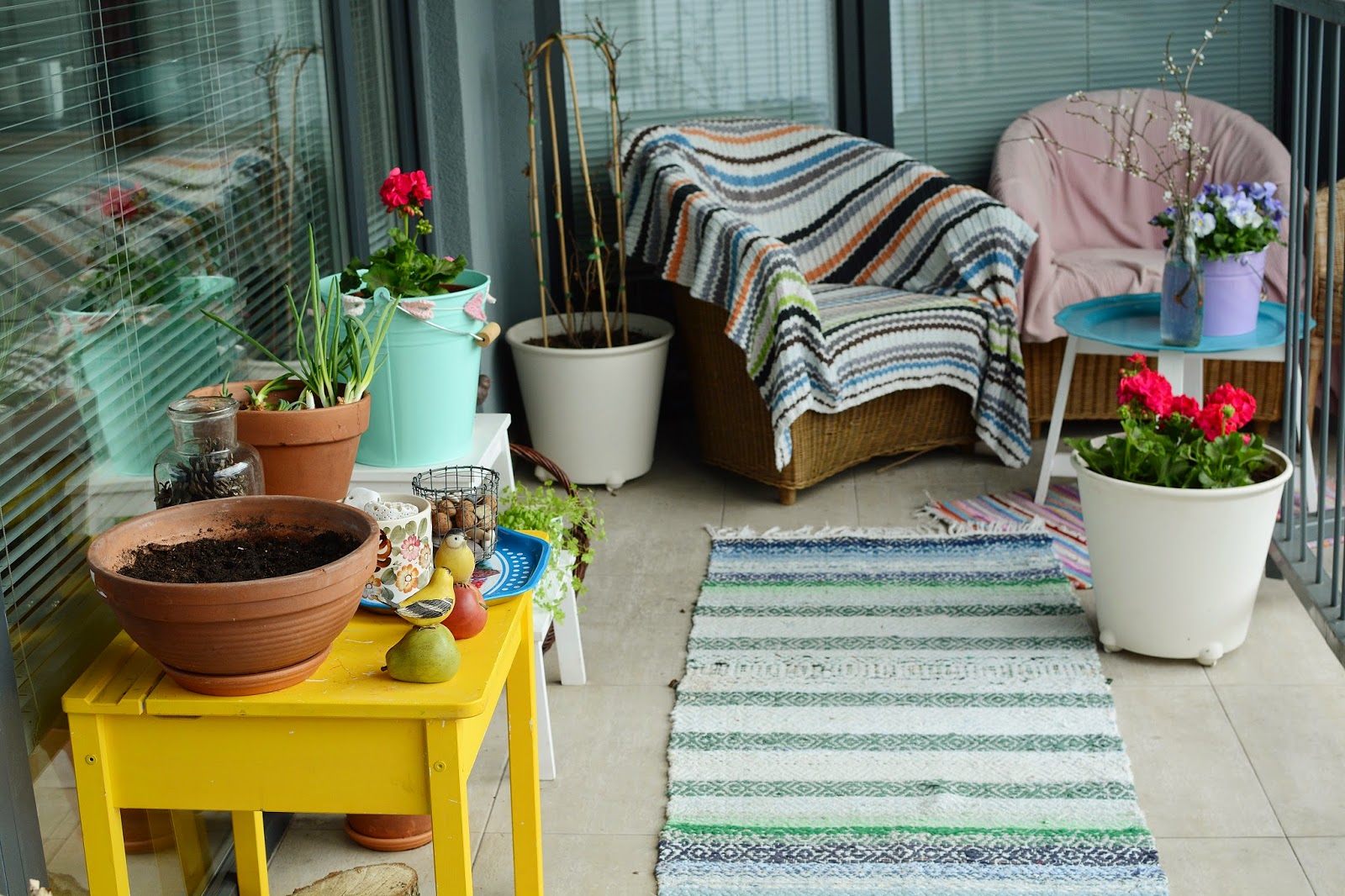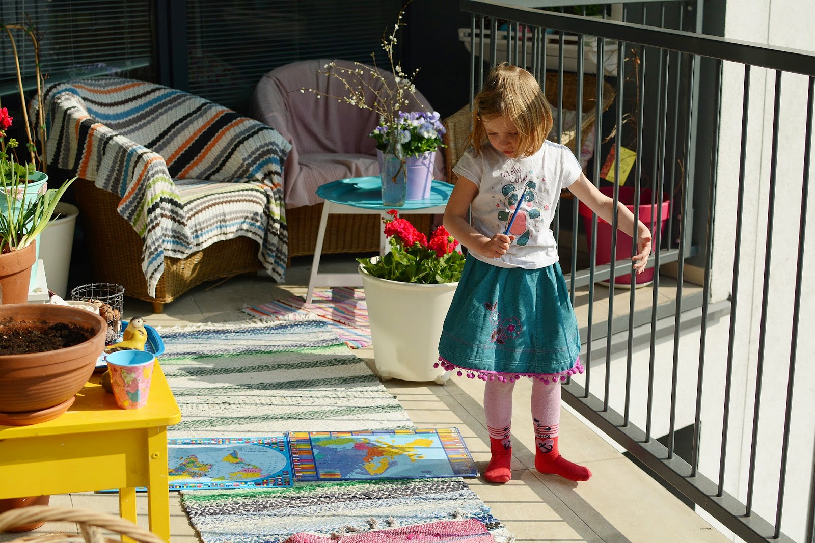 Zostawiam Was ze zdjęciami "kiełkującego" balkonu. To on okazał się pretekstem do sesji do MM. Zdjęcia robione w sierpniu zeszłego roku (ale jesteśmy opaleni!) pokazują go w pełnym rozkwicie. W tej chwili dopiero startujemy. Posadziłyśmy z Zosia bratki i pierwsze pelargonie. Wysiałyśmy groszek, łubin i maciejkę. Przesadziłyśmy szczypiorek i zioła. Rozłożyłyśmy dywaniki, ozdoby i cieszymy się naszym dodatkowym "pokojem" :-)