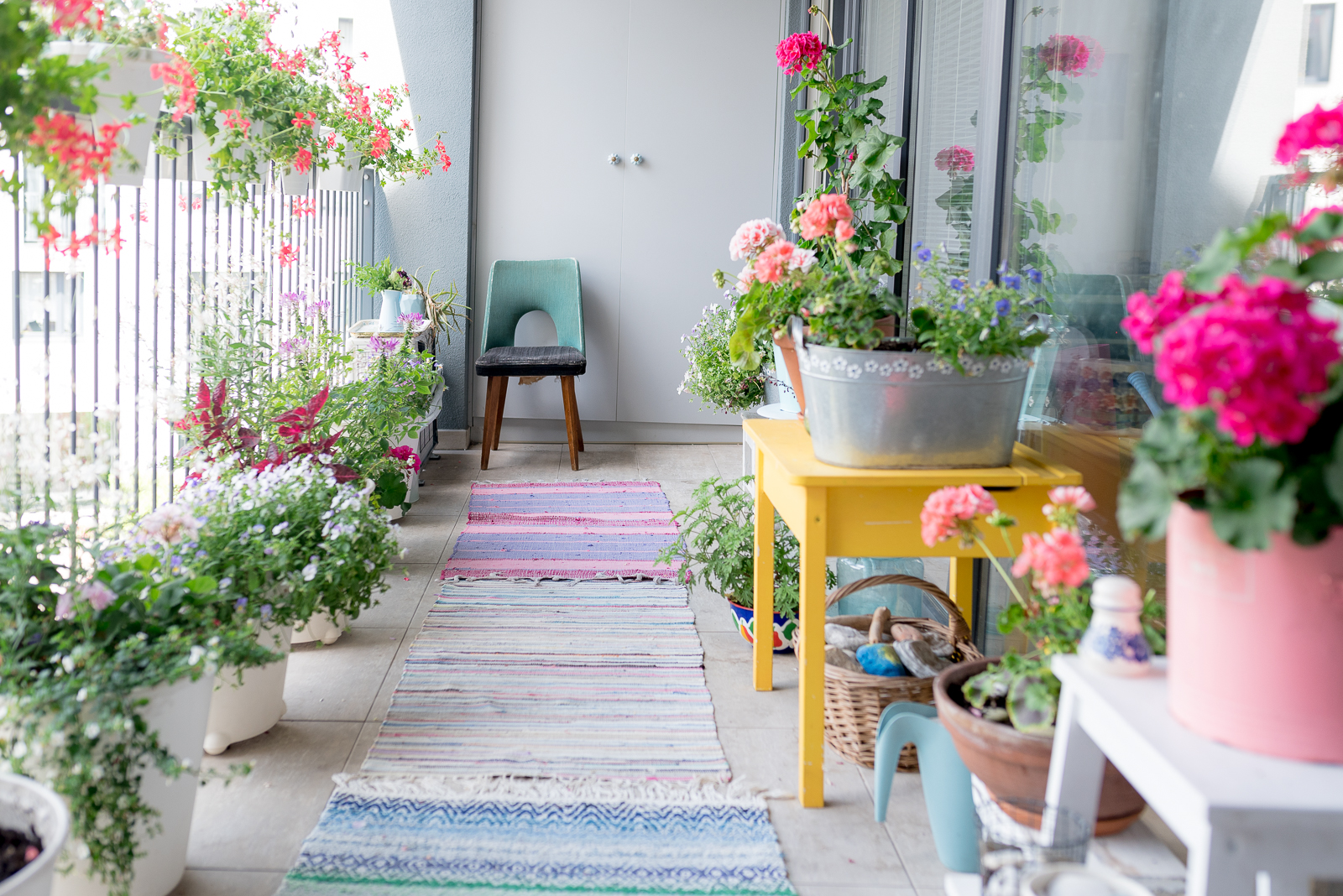 Jeżeli do mnie zaglądacie, to nie dopatrzycie się żadnych nowości. Te same donice, ozdoby, dywaniki. Postanowiłam na balkonie wykorzystywać to, co mam i nie ulegać zachciankom i nadmiernej konsumpcji.