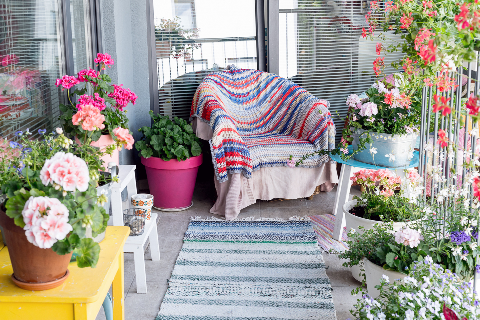 Dywaniki płowieją od słońca, doniczki nabierają patyny, stołeczki linieją od starej farby, coś się stłucze, coś się zniszczy...