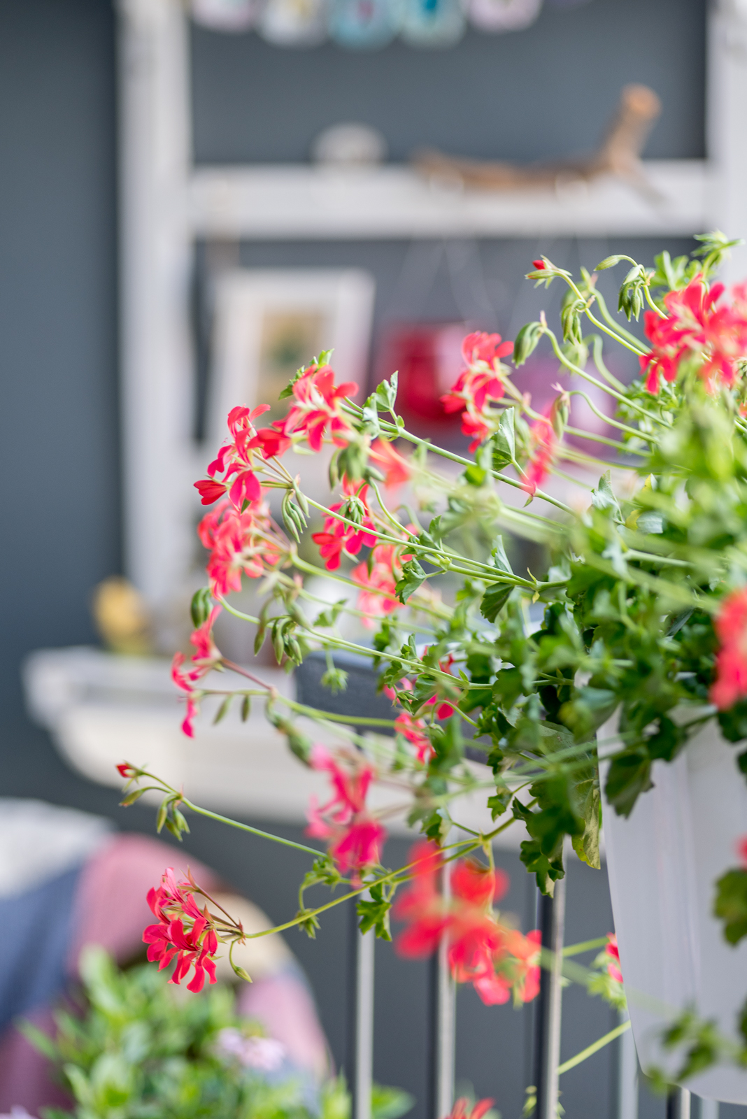 Ta, która wyrosła mi, jak drzewo, geranium i ślicznotki na białej półce to prezenty od pewnej pięknej 87-letniej damy. Jestem dumna, że je mam i bardzo szczęśliwa, że się przyjęły.