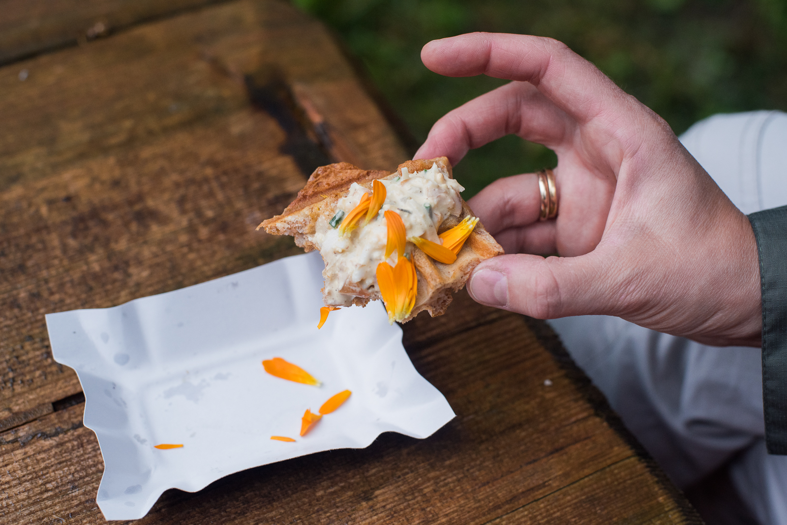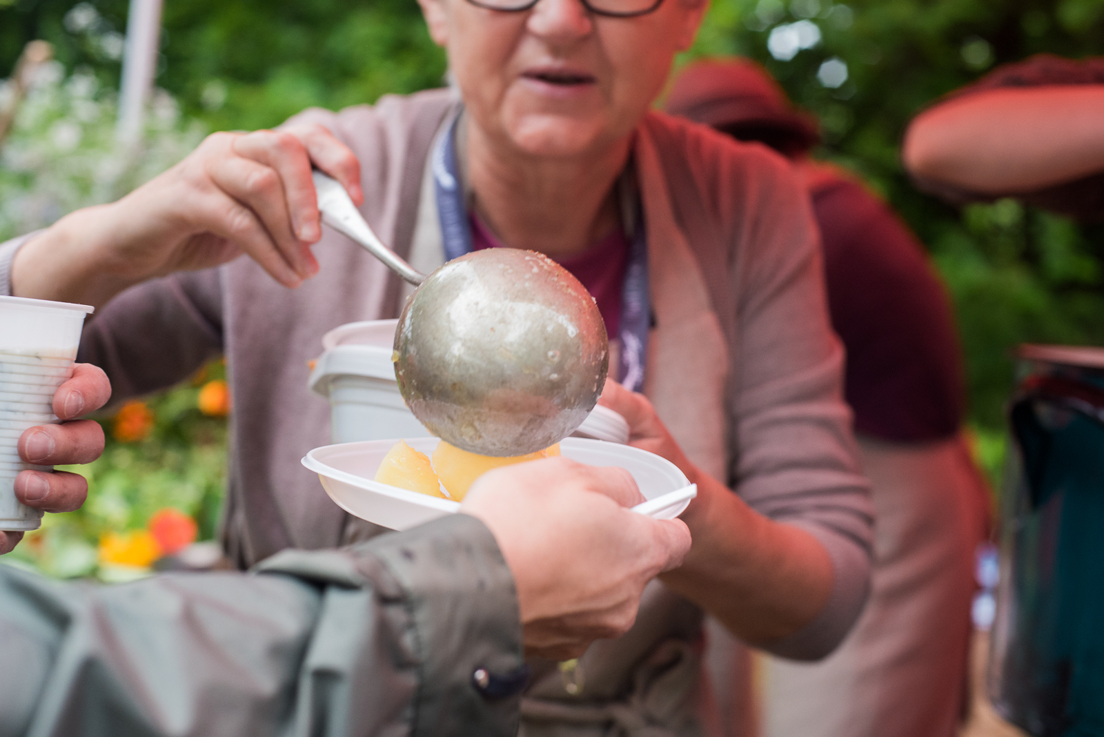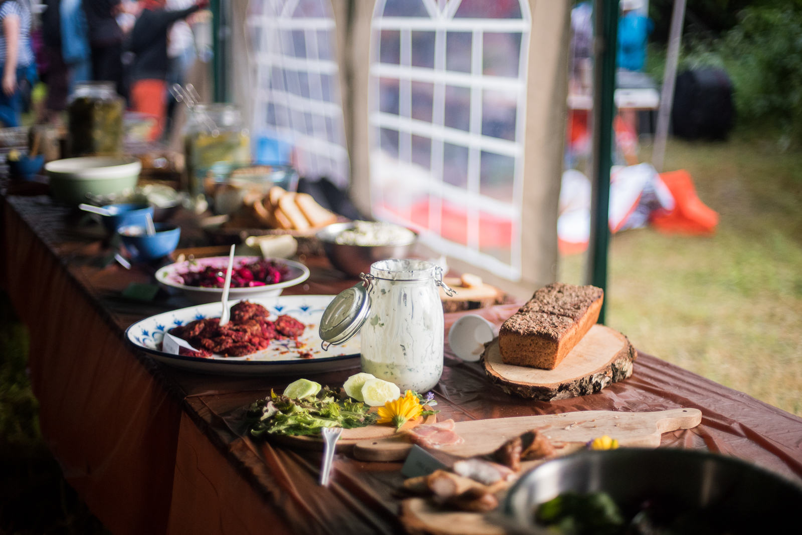 I można jeść do woli - mięsa, sałaty, zupy, placki (słynne beskidzkie proziaki), pasztety, bochny chleba, góry ciast. Wszystko pyszne, domowe, bardzo często ekologiczne. Pachnące od ziół z okolicznych łąk. Dla wegetarian i mięsożerców. Dania nakładają sami twórcy, można pogadać, podpytać się o przepis, poznać się.