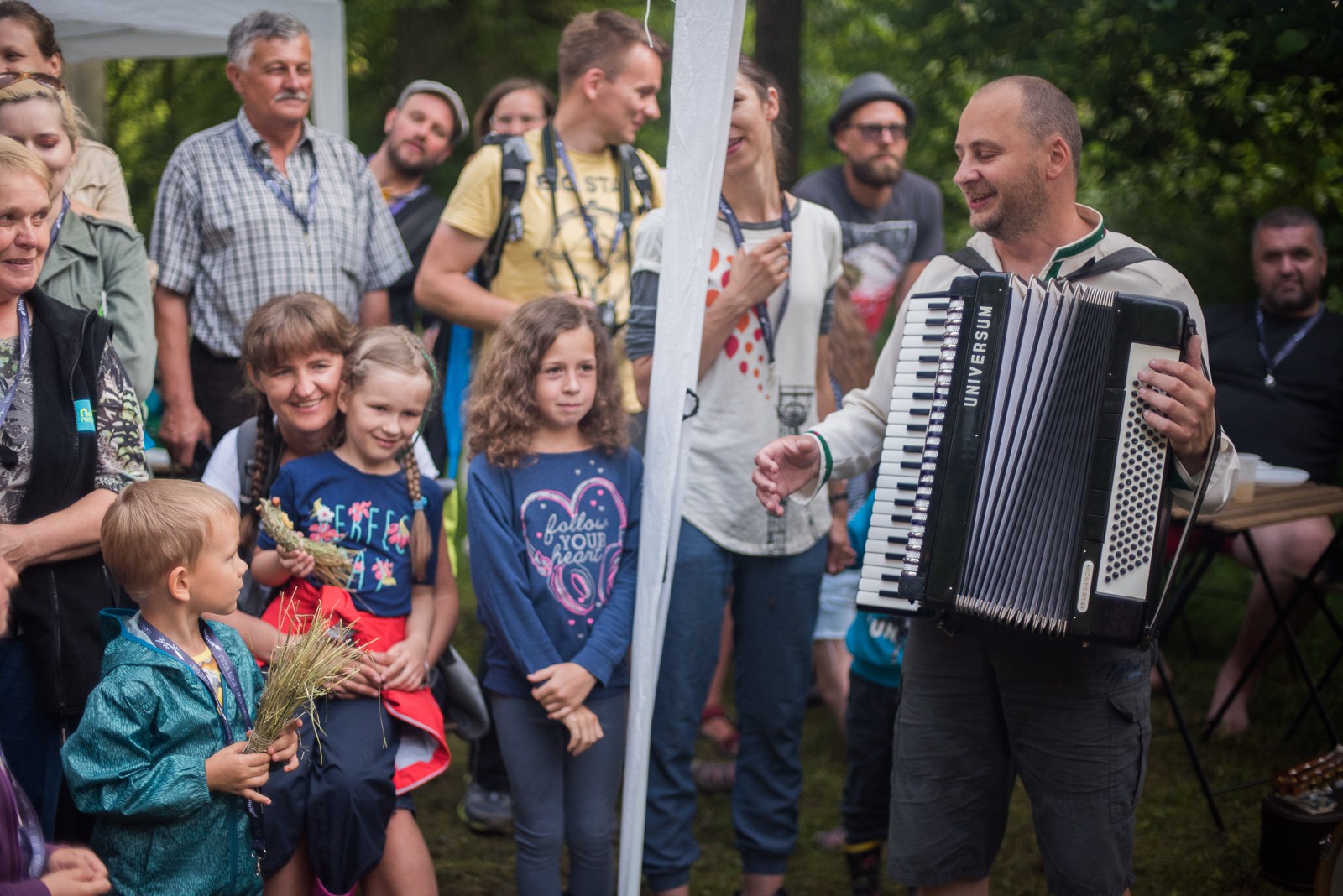 Łemkowski zespół Serencza gra do tańca. Słuchamy opowieści o tradycjach Łemków i ich tragicznej historii wypędzenia stąd kilkadziesiąt lat temu.