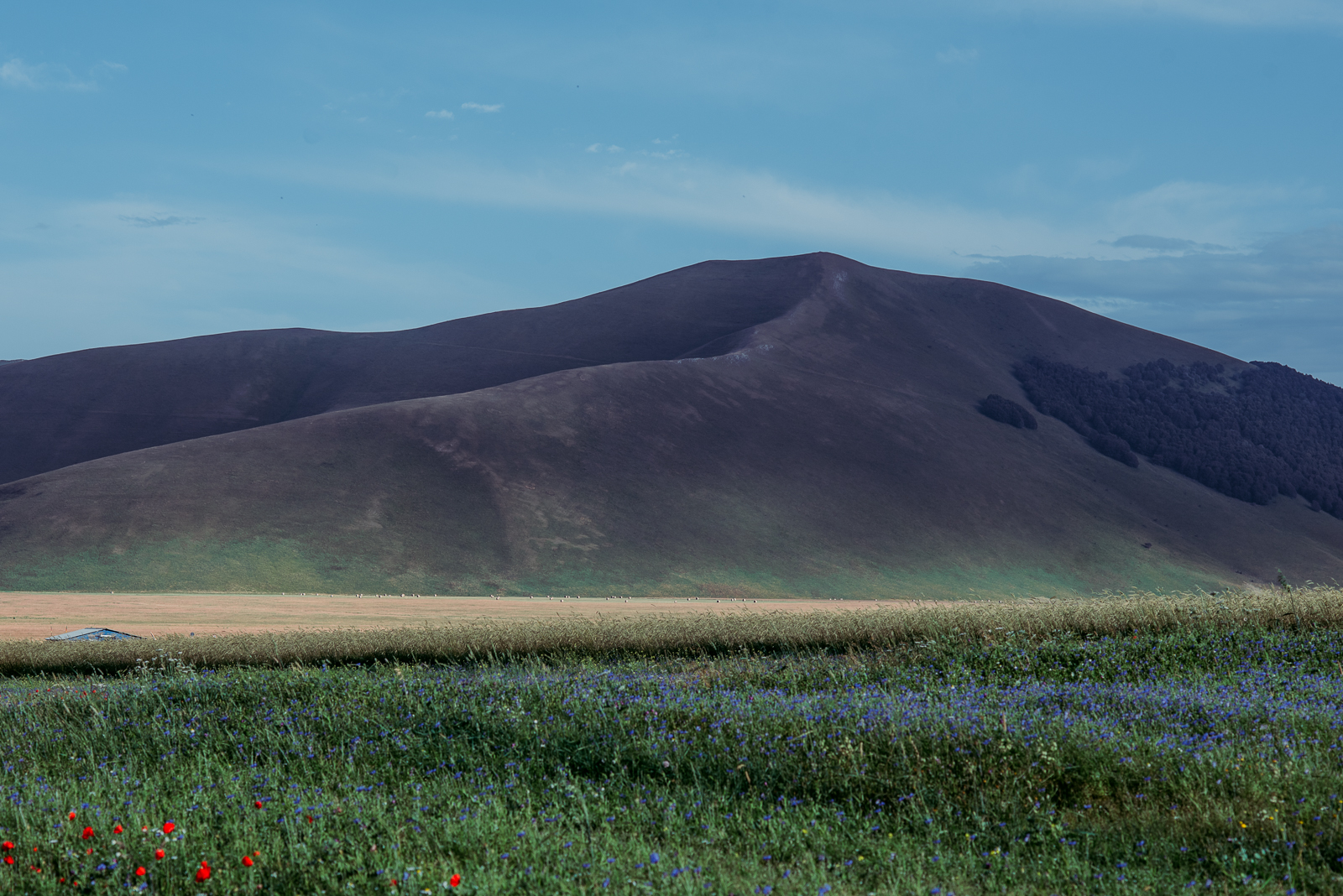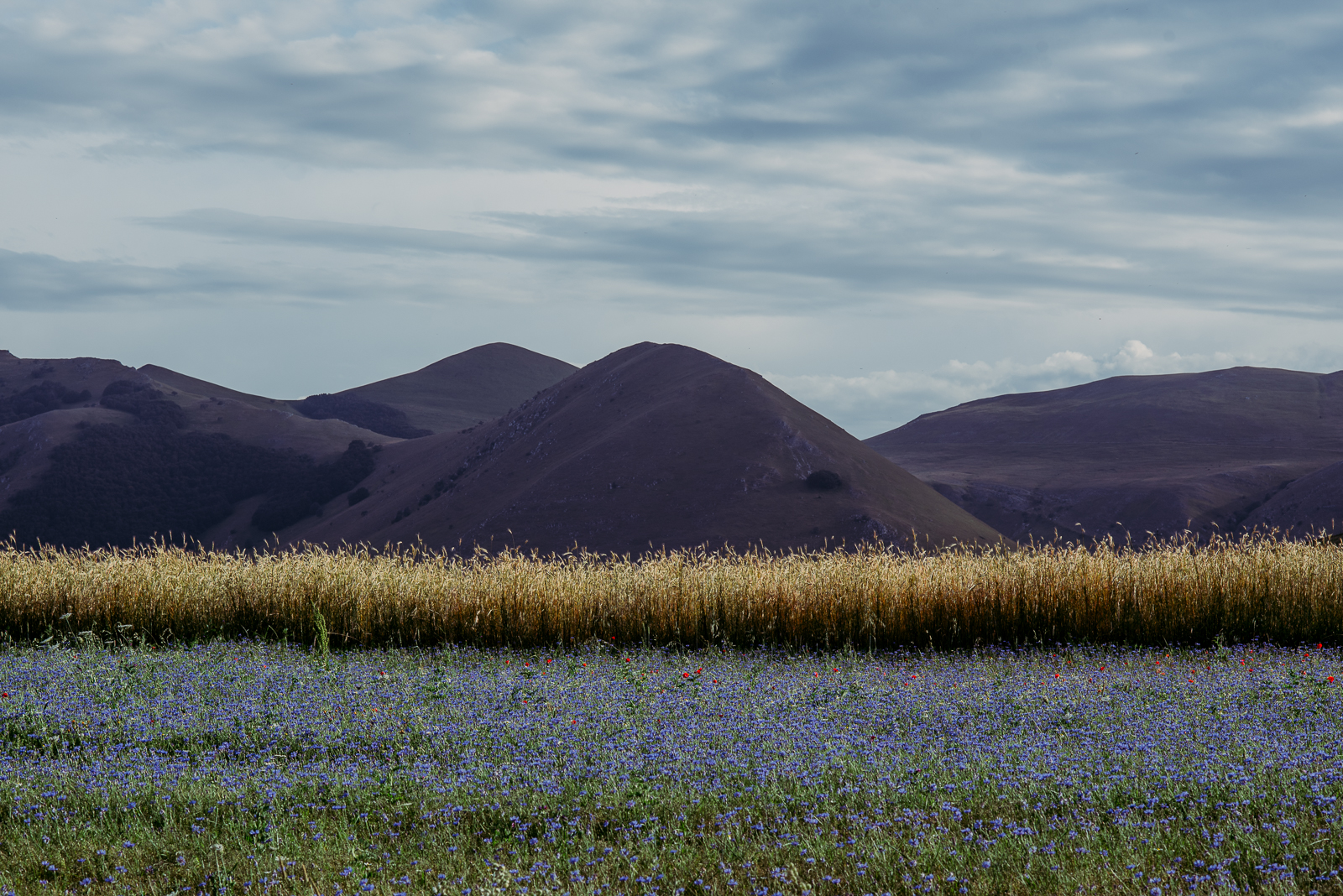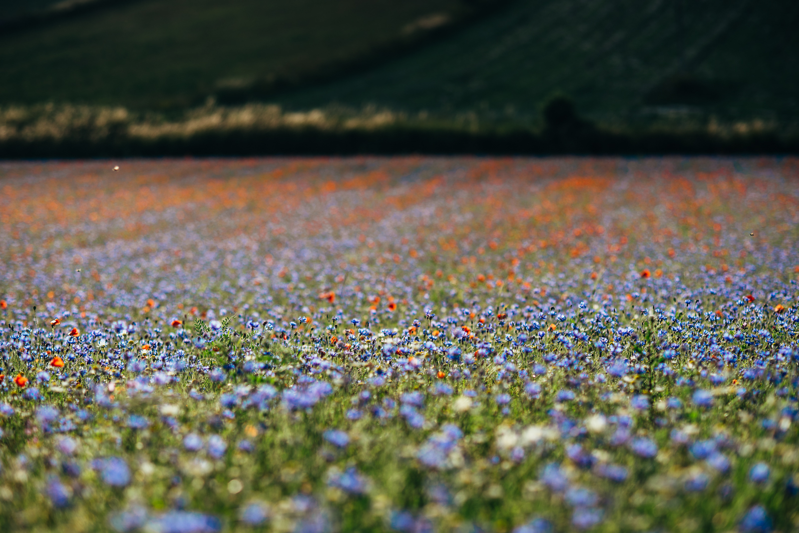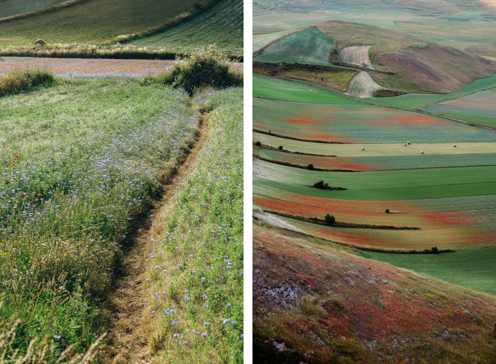 Przed Wami maki i chabry na płaskowyżu Piani di Castelluccio na granicy Umbrii i Marche.