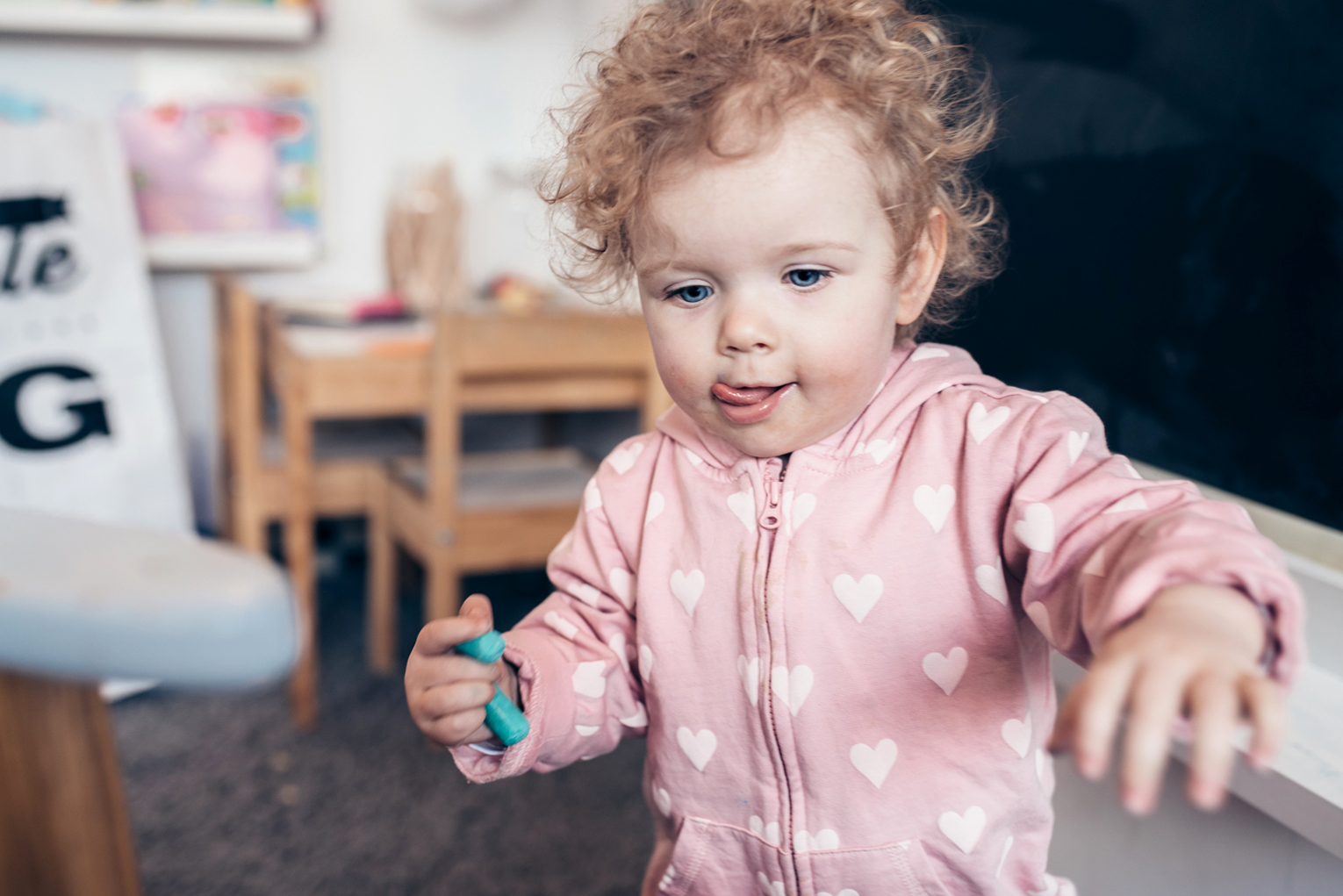 A na zdjęciach piękna Helena, córka Zosi, bawiąca się w kawiarni.